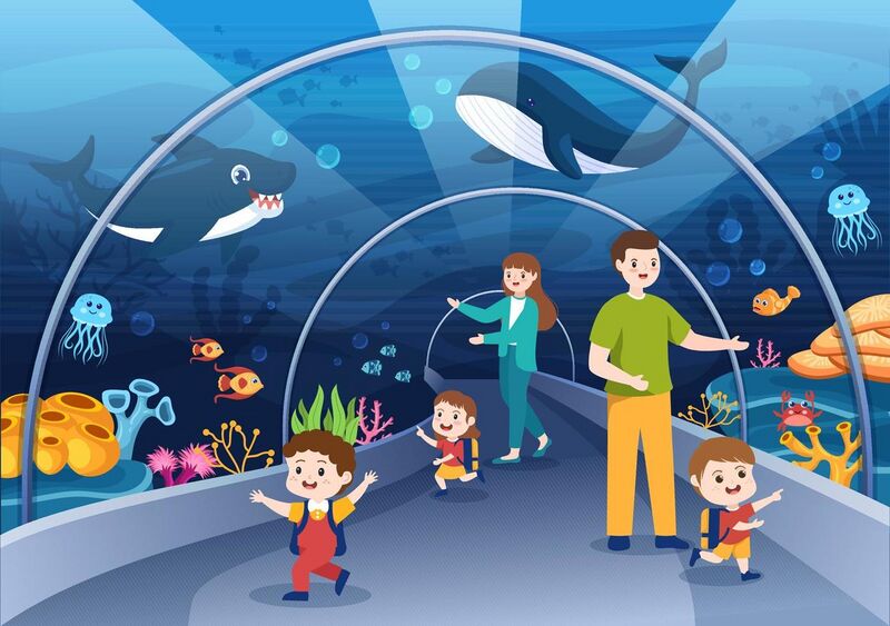 File:Aquarium-template-hand-drawn-cartoon-flat-illustration-with-family-and-kids-looking-at-underwater-fish-sea-a121nimals-variety-marine-flora-and-fauna-vector.jpg