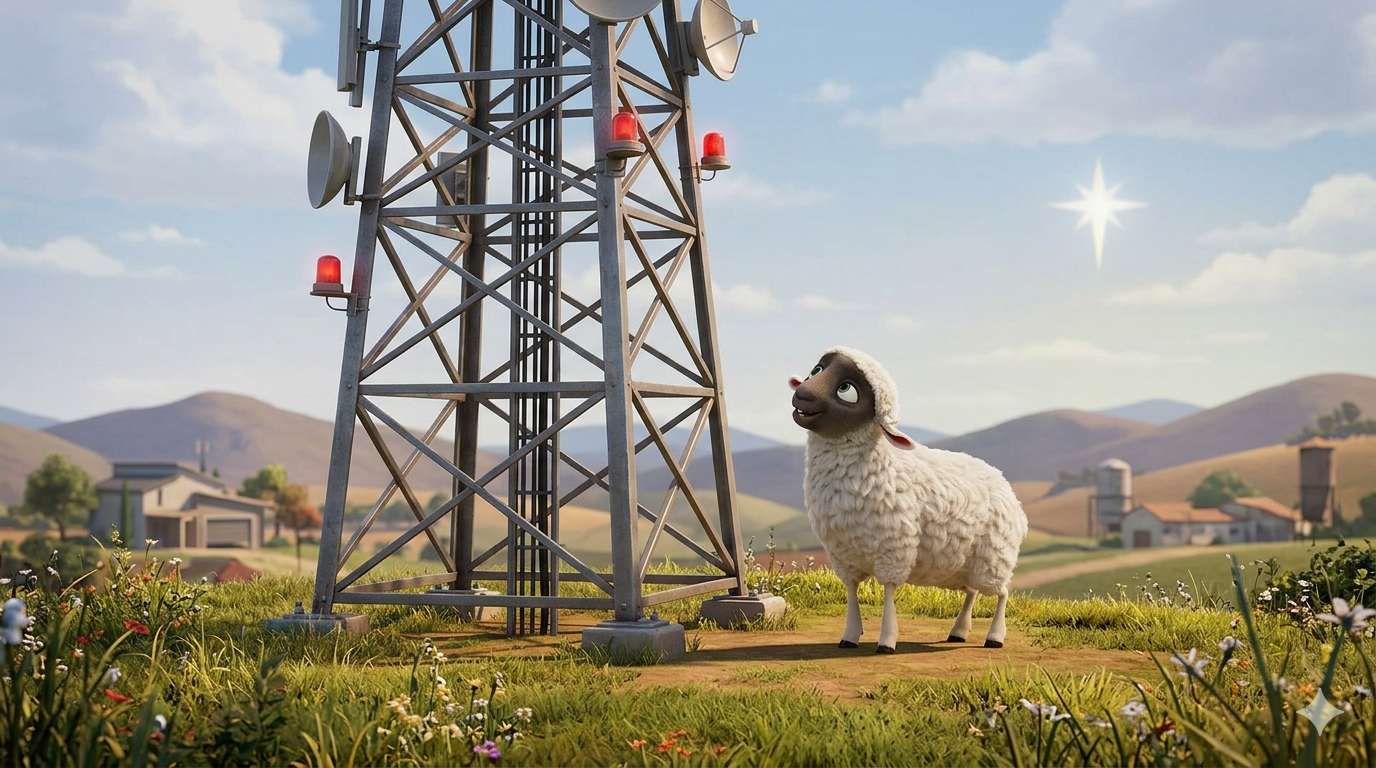 File:Ruth the sheep next to a radio tower ai.png
